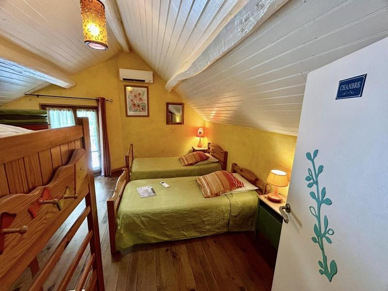 Im 1. Stock: 1 Schlafzimmer mit 1 Doppelbett (140), 1 Schlafzimmer mit 2 Einzelbetten (90x200. Kann zu 1 Doppelbett zusammengeschoben werden) und 1 Etagenbett (2x90), 2 Kinderbetten, Duschbad mit WC. Telefon im eingeschränkten Betrieb. Auf Anfrage Möglichkeit für Kurzaufenthalte von mindestens 2 Nächten außer Juli und August.