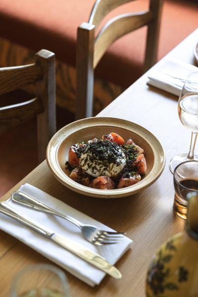 La cuisine s’inspire profondément du vivant. Ici, les produits bruts et non transformés sont mis à l’honneur, soigneusement sélectionnés pour leur qualité et leur saisonnalité. Les assiettes, à la fois généreuses et épurées, célèbrent les saveurs essentielles : légumes récoltés au meilleur de leur maturité, viandes délicatement travaillées, herbes fraîches qui viennent parfaire l’ensemble. Les recettes évoluent au fil du calendrier naturel, révélant l’expression la plus juste de chaque ingrédient.