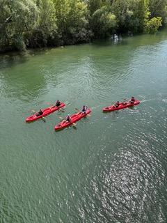 Réservez sur le site kayakomat.com, ou sur place grâce au QRCode, déverrouillez le cadenas qui libère votre canoë doté de gilets et de pagaies doubles. Partez naviguer librement, retour au même endroit.