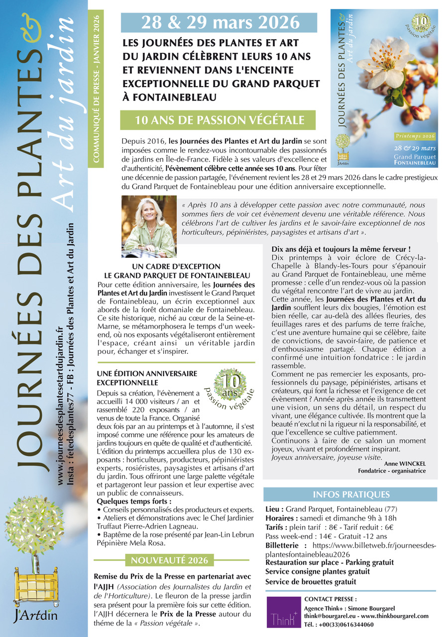 La Fête des Plantes de Blandy-Les-Tours organisée par Anne Winckel se réinvente et s’installe à nouveau dans cet écrin d’exception à Fontainebleau les 28 & 29 mars 2026. Un rendez-vous à ne pas manquer !
